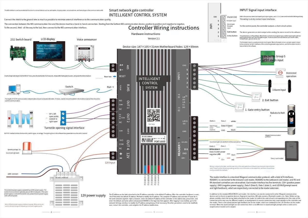 ● 485 expansionsgränssnitt ansluts direkt till ett 232 QR-kodkonverteringskort, två 485-läsartyper, ett röstkort och en LCD-skärm.